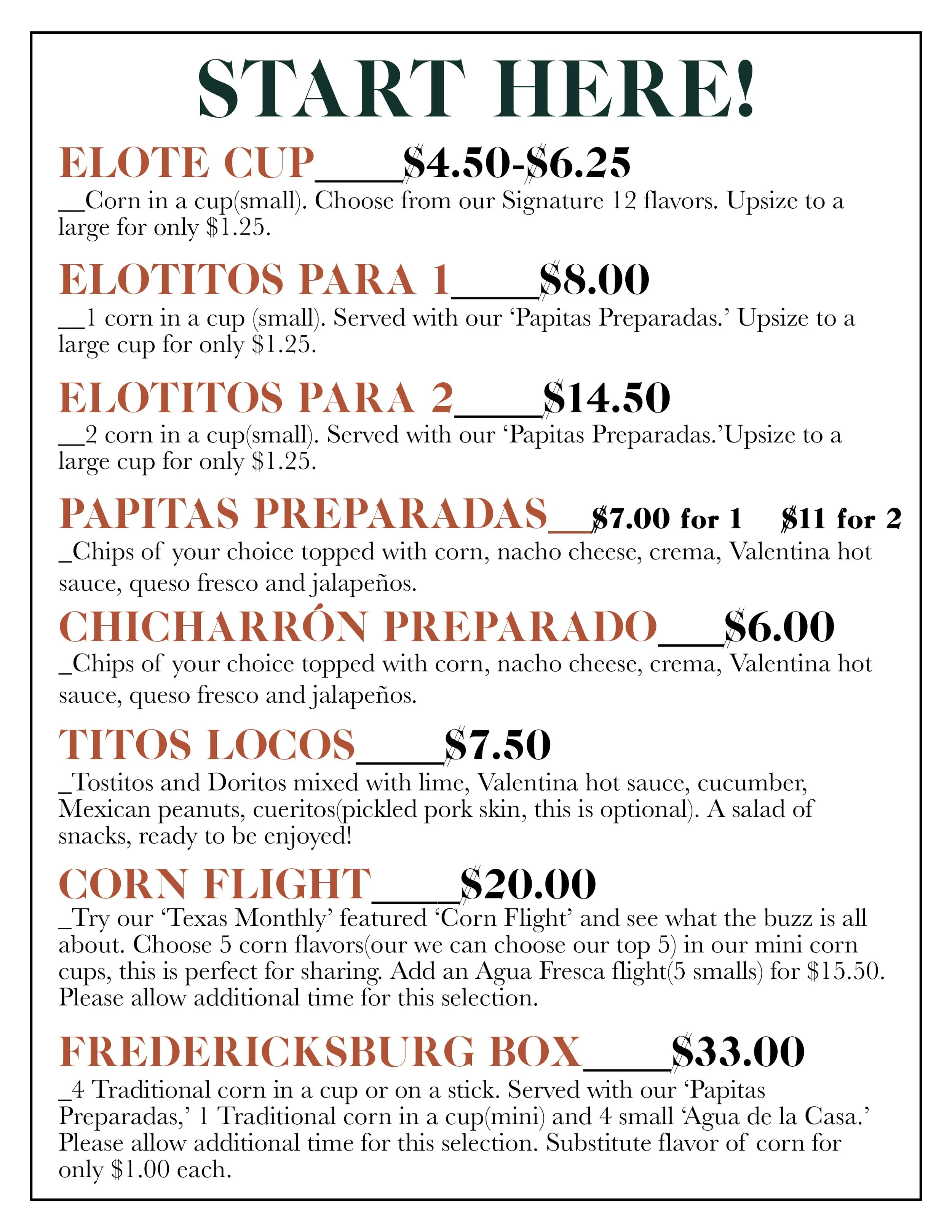 Fredericksburg Road Menu
